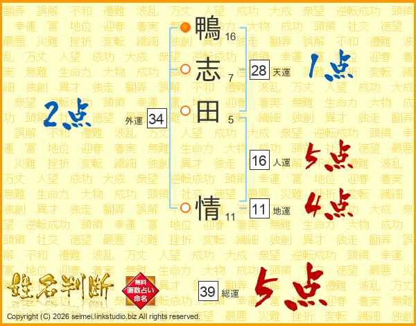 鴨志田情さんの総運は39画の5点!