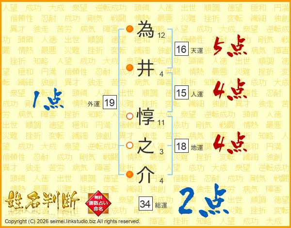 為井惇之介さんの総運は34画の2点!