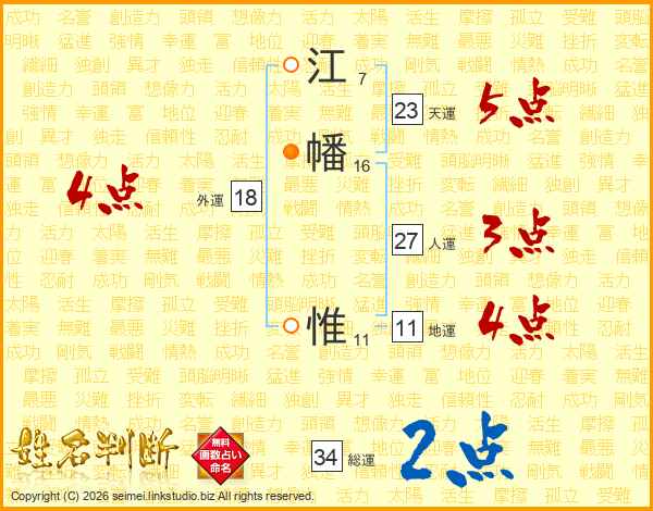 江幡惟さんの総運は34画の2点!