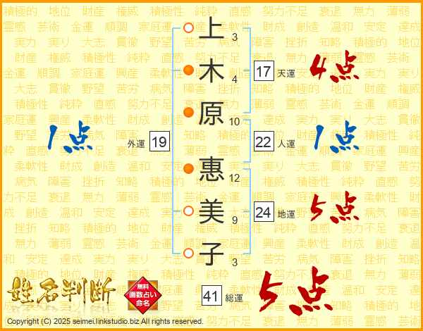 上(3画)木(4画)原(10画) 惠(12画)美(9画)子(3画)