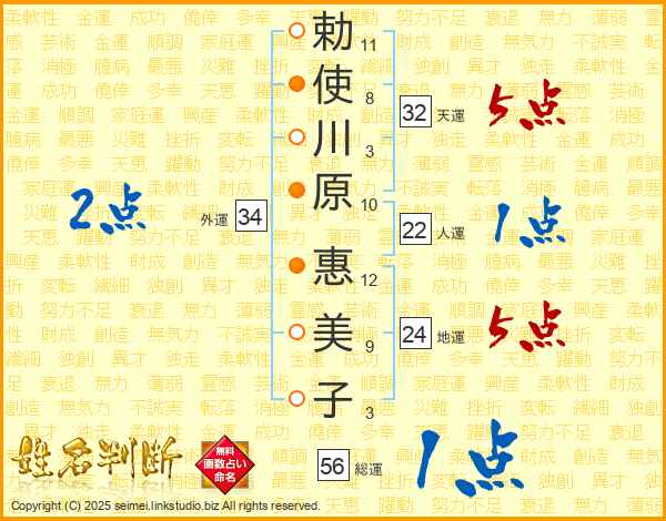 勅使川原惠美子さんの総運は56画の1点!
