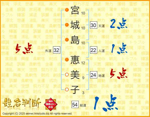 宮城島惠美子さんの総運は54画の1点