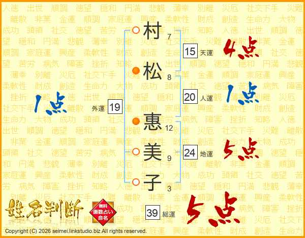 村松惠美子さんの総運は39画の5点!