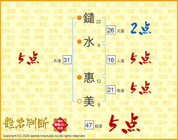 鑓水惠美さんの総運は47画の5点!