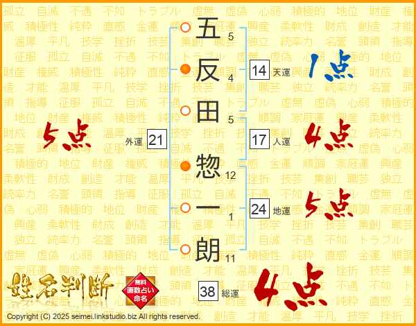 五反田惣一朗さんの総運は38画の4点!