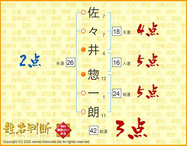 佐々井惣一朗さんの天運は18画の4点!