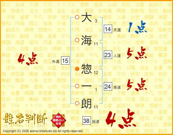 大海惣一朗さんの総運は38画の4点!