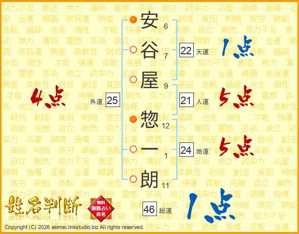 安谷屋惣一朗さんの総運は46画の1点!