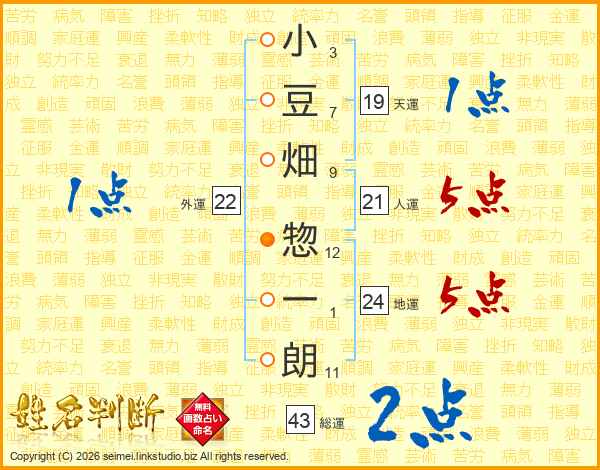 小豆畑惣一朗さんの総運は43画の2点!