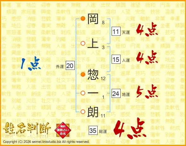 岡上惣一朗さんの天運は11画の4点!
