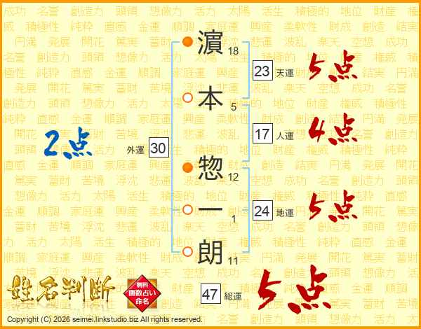 濵本惣一朗さんの総運は47画の5点!