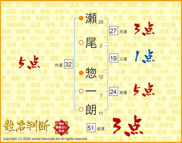 瀬尾惣一朗さんの外運は32画の5点!