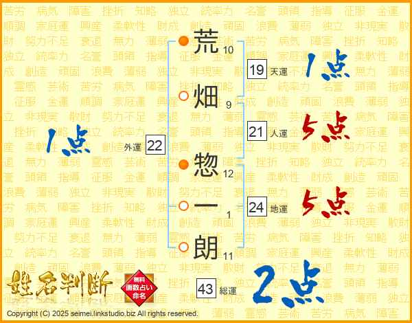 荒畑惣一朗さんの人運は21画の5点!