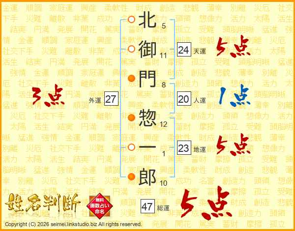 北御門惣一郎さんの総運は47画の5点!