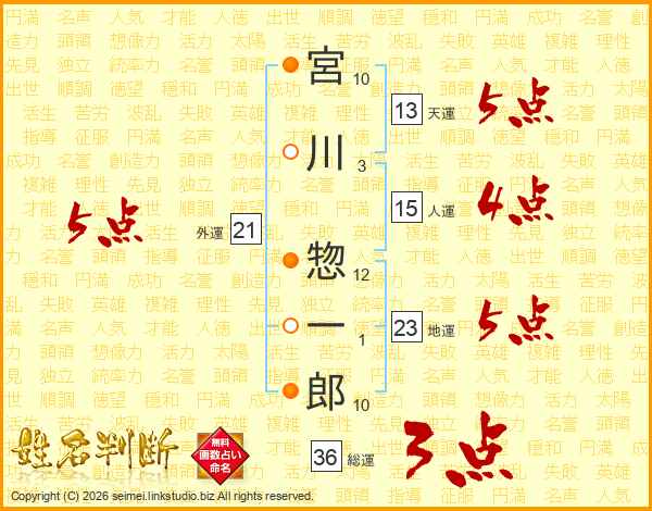 宮川惣一郎さんの総運は36画の3点!