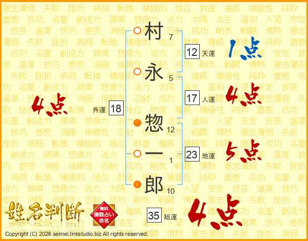 村永惣一郎さんの総運は35画の4点!