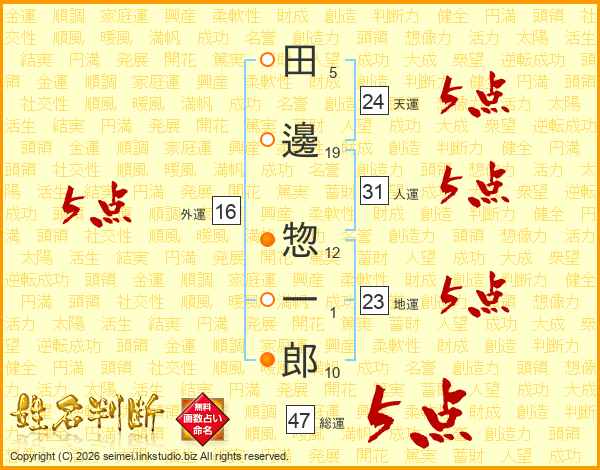田(5画)邊(19画) 惣(12画)一(1画)郎(10画)