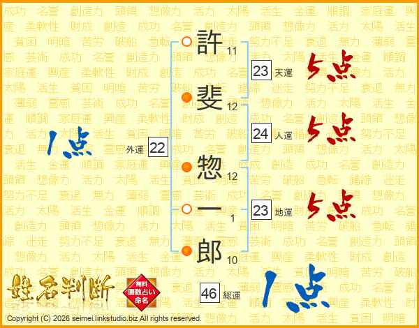 許斐惣一郎さんの総運は46画の1点!