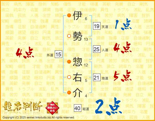 伊勢惣右介さんの人運は25画の4点!