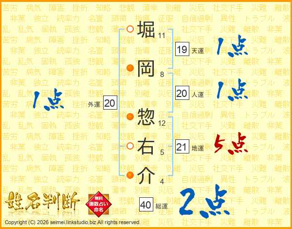 堀岡惣右介さんの人運は20画の1点!