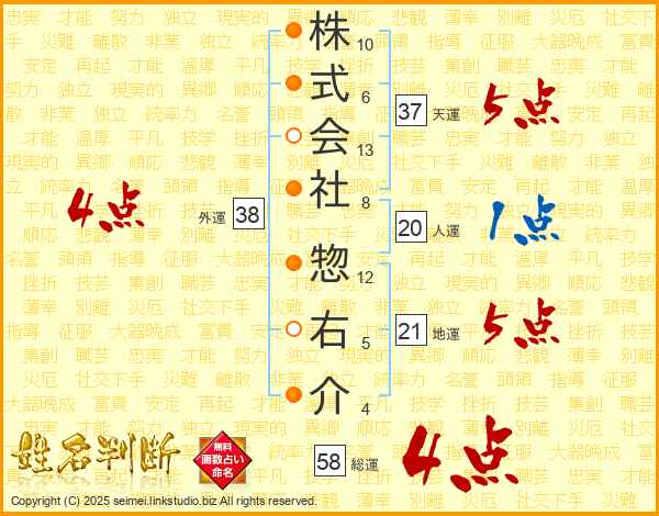 株式会社惣右介さんの総運は58画の4点!