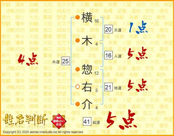 横木惣右介さんの総運は41画の5点!