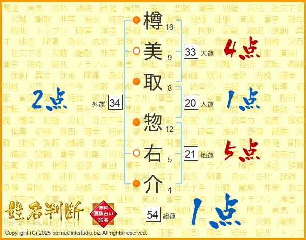 樽美取惣右介さんの総運は54画の1点!