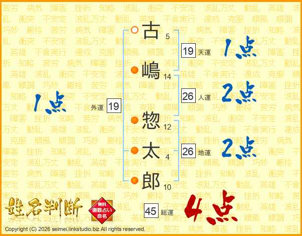 古嶋惣太郎さんの総運は45画の4点!