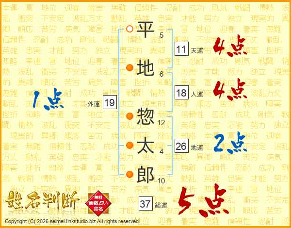 平(5画)地(6画) 惣(12画)太(4画)郎(10画)