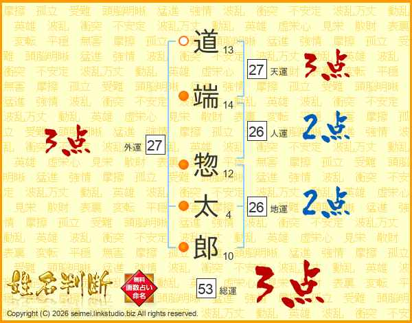 道端惣太郎さんの天運は27画の3点!
