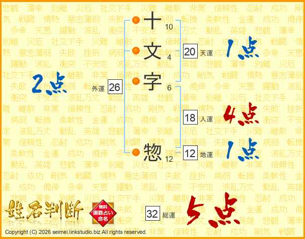十文字惣さんの総運は32画の5点!