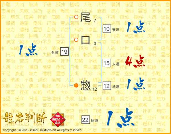 尾口惣さんの総運は22画の1点!