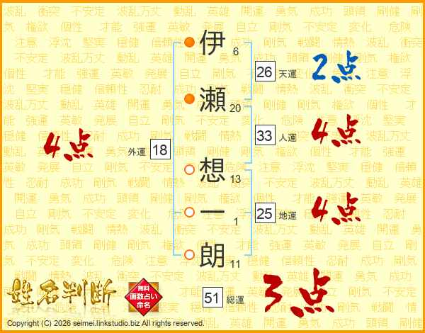 伊瀬想一朗さんの人運は33画の4点!