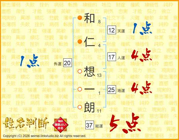 和仁想一朗さんの総運は37画の5点!