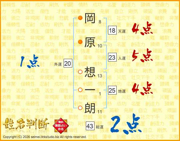岡原想一朗さんの地運は25画の4点!