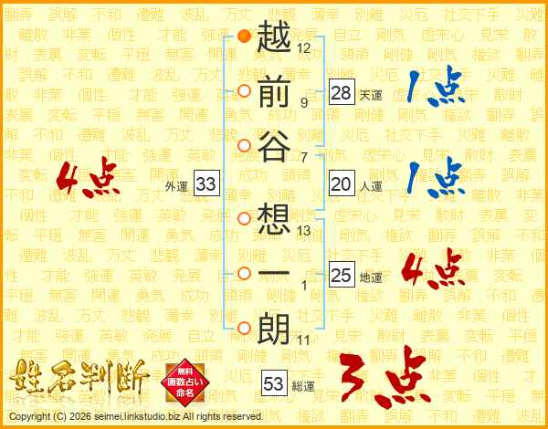 越前谷想一朗さんの外運は33画の4点!
