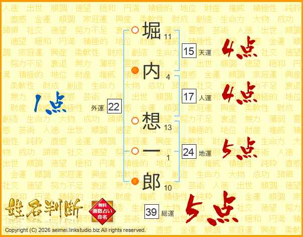 堀内想一郎さんの総運は39画の5点!