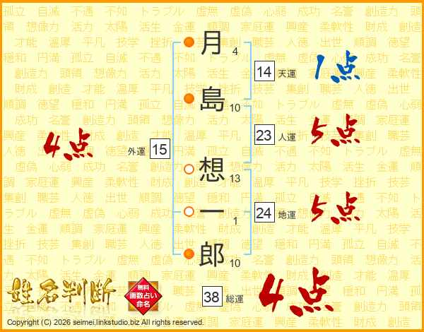 月島想一郎さんの総運は38画の4点!