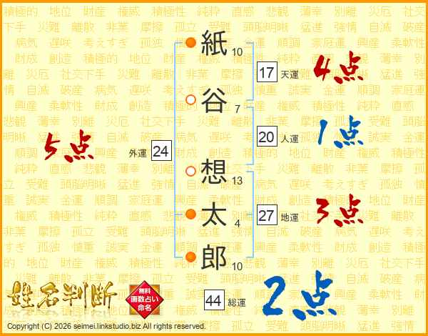 紙谷想太郎さんの総運は44画の2点!
