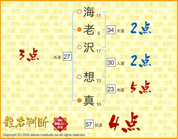 海老沢想真さんの総運は57画の4点!