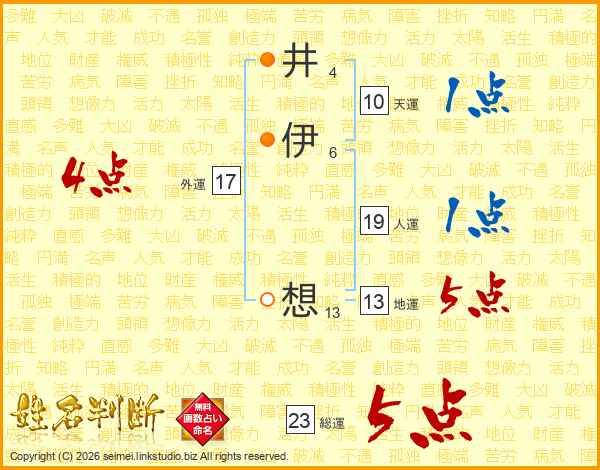 井伊想さんの総運は23画の5点!