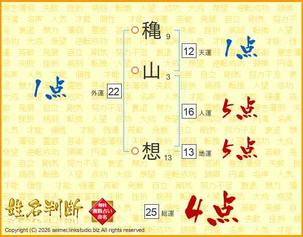 穐山想さんの総運は25画の4点!