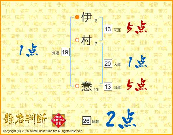 伊村惷さんの総運は26画の2点!