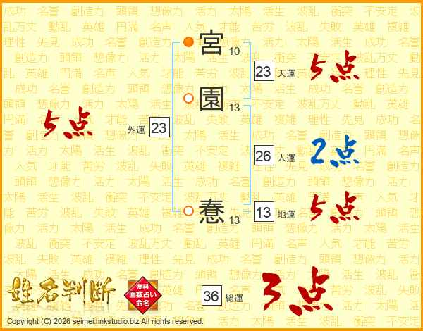 宮園惷さんの天運は23画の5点!