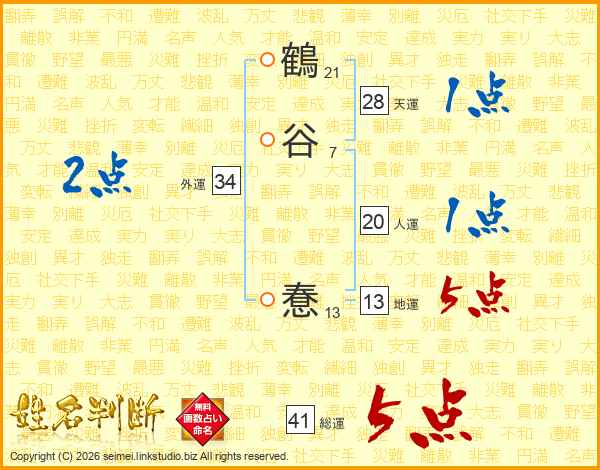 鶴谷惷さんの総運は41画の5点!