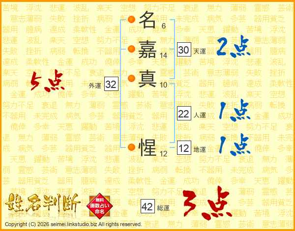 名嘉真惺さんの総運は42画の3点!