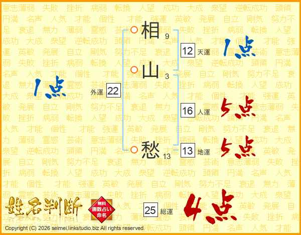 相山愁さんの総運は25画の4点!
