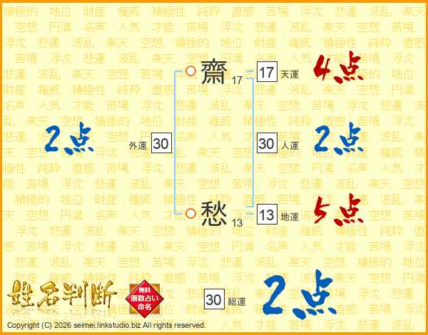 齋愁さんの総運は30画の2点!