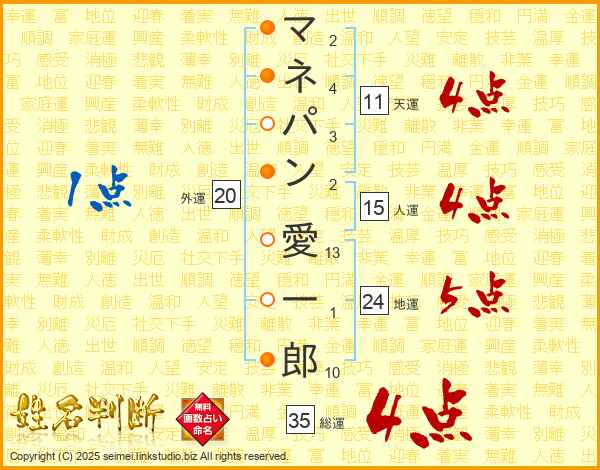 マネパン愛一郎さんの総運は35画の4点!