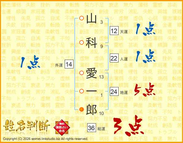 山科愛一郎さんの総運は36画の3点!